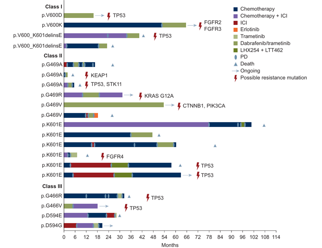 3.II 類突變避坑指南:II類突變避坑指南:避免使用BRAF V600E選擇性抑制劑,優(yōu)先選擇化療聯(lián)合免疫治療,或在醫(yī)生指導下嘗試泛RAF抑制劑聯(lián)合MEK抑制劑。