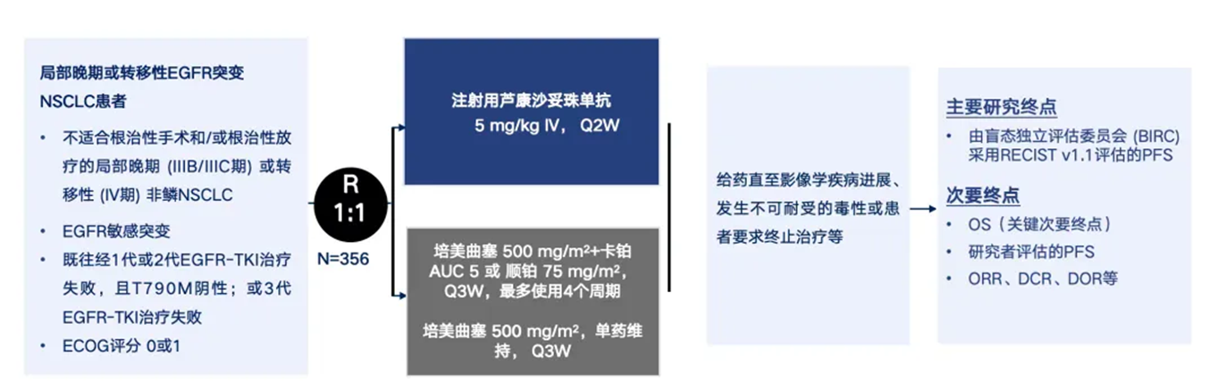 研究人群:經(jīng)EGFR-TKI靶向治療后疾病進(jìn)展的EGFR突變局部晚期或轉(zhuǎn)移性NSCLC患者。